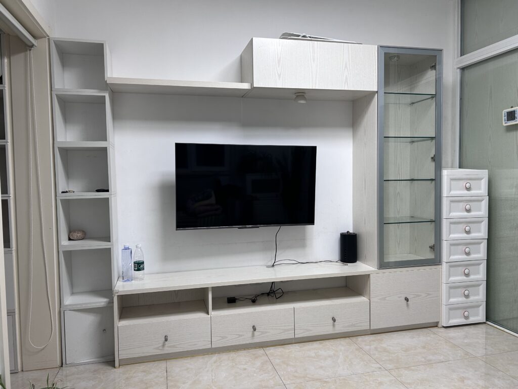 南向的房间隔断为客厅和一个带书桌和衣柜的小卧室