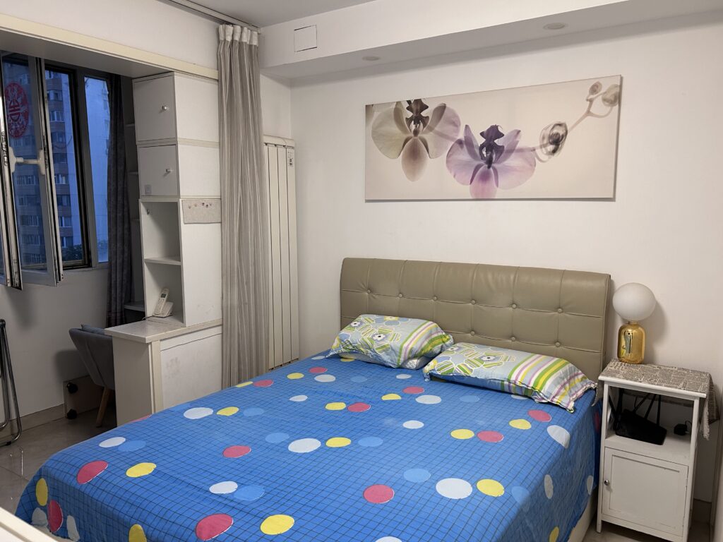 主卧配置1.5米床一张,定制衣柜一个,西向阳台定制了一个书桌柜